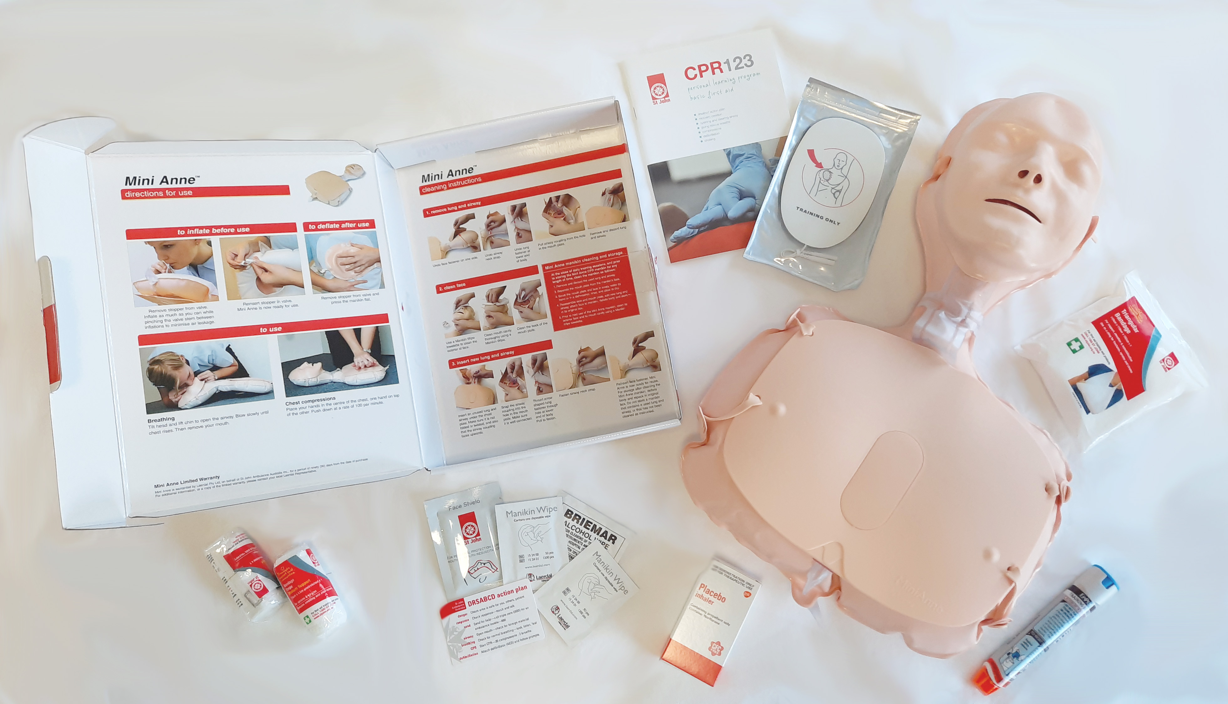Please inflate your manikin as per the instructions on the box and have all the equipment ready for the start of the training session.