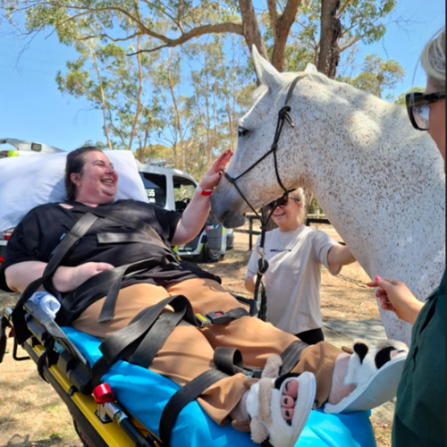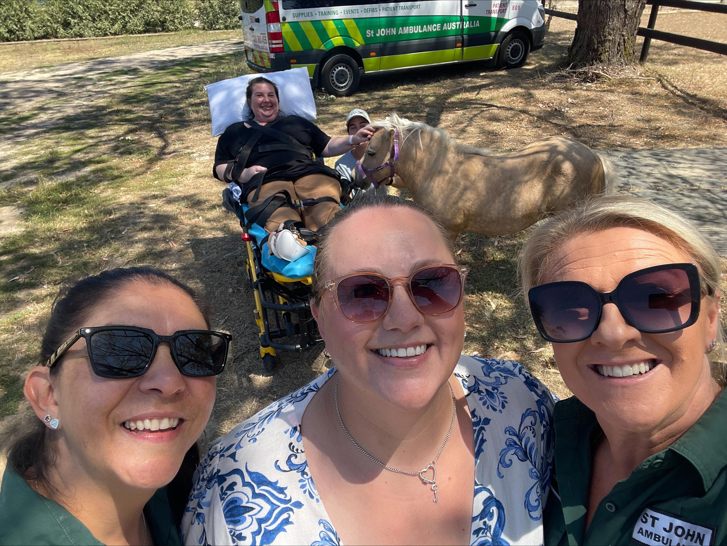 On the day, two St John members transported Annie to the farm, where three gentle horses greeted her, a moment filled with laughter, emotion and connection.
